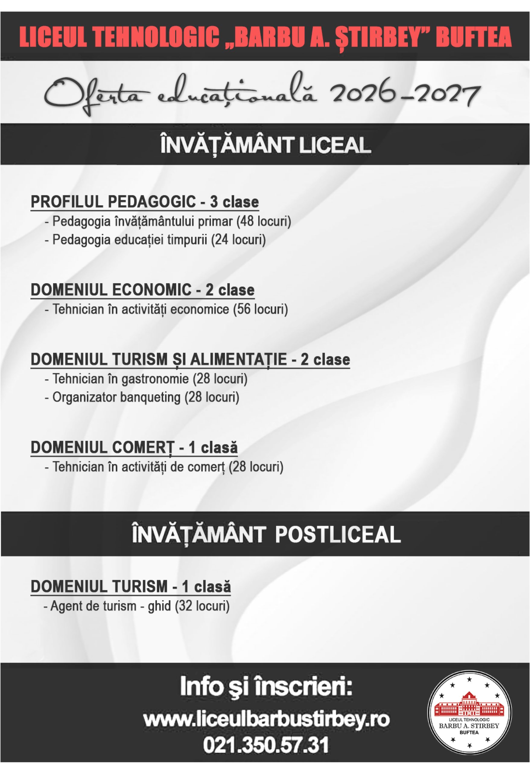 - Oferta educațională a Liceului Tehnologic „Barbu A. Știrbey” Buftea pentru anul școlar 2025-2026